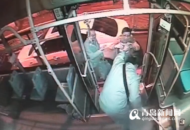 七旬老人摔伤后上车血流不止 乘务员蹲地救助