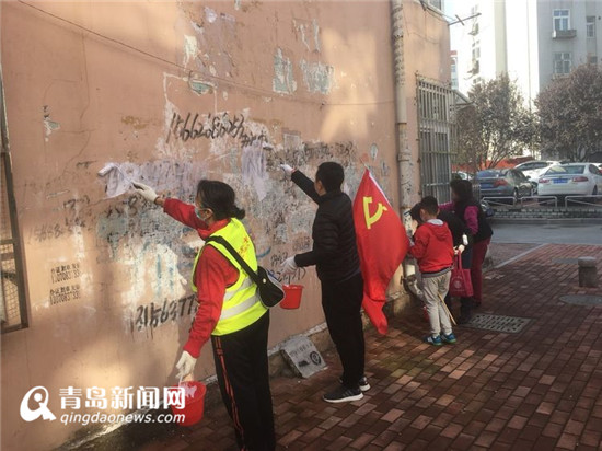 青岛新闻网11月10日讯(记者 王宇琦)11月10日上午镇江路街道对口科室,社区党员志愿者,市民街长,社区工作人员共26人在社区姜蔚书记带领下对辖区内的乱涂乱画小广告进行了一次彻底粉刷清理。