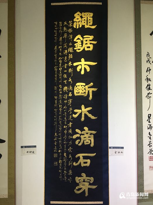 青岛新闻网11月12日讯(记者 王超)为庆祝中国改革开放四十周年、中韩两国建交二十六周年,由青岛市崂山区文化新闻出版局和(社团法人)韩国书法家协会暨仁川广域市支会主办,崂山美术馆与青岛吉金堂美术馆承办的“2018中韩书画国际交流展”11月10日下午三点在崂山美术馆拉开帷幕,对外展出至11月16日。