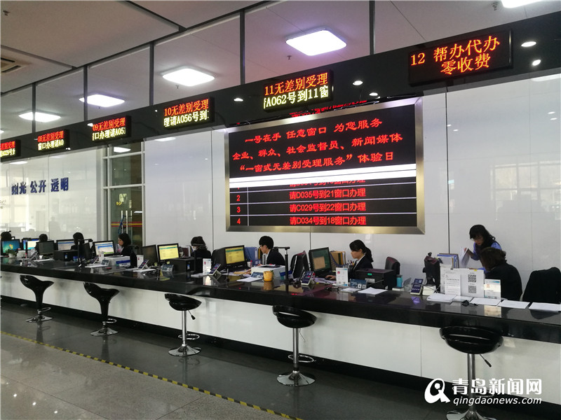 青岛新闻网11月14日讯 11月14日起,来市南区行政审批服务大厅办事创业的企业和群众,除税务、规划、消防的办理事项需专窗受理以外,其余18个部门400多项事项均可通过“青岛市南审批大厅”微信公众号或实体大厅叫号机,任意取号办理。据悉,“无差别综合受理”窗口11月8日首日接办事件85项,极大提高了办事效率,获得居民群众一致好评。