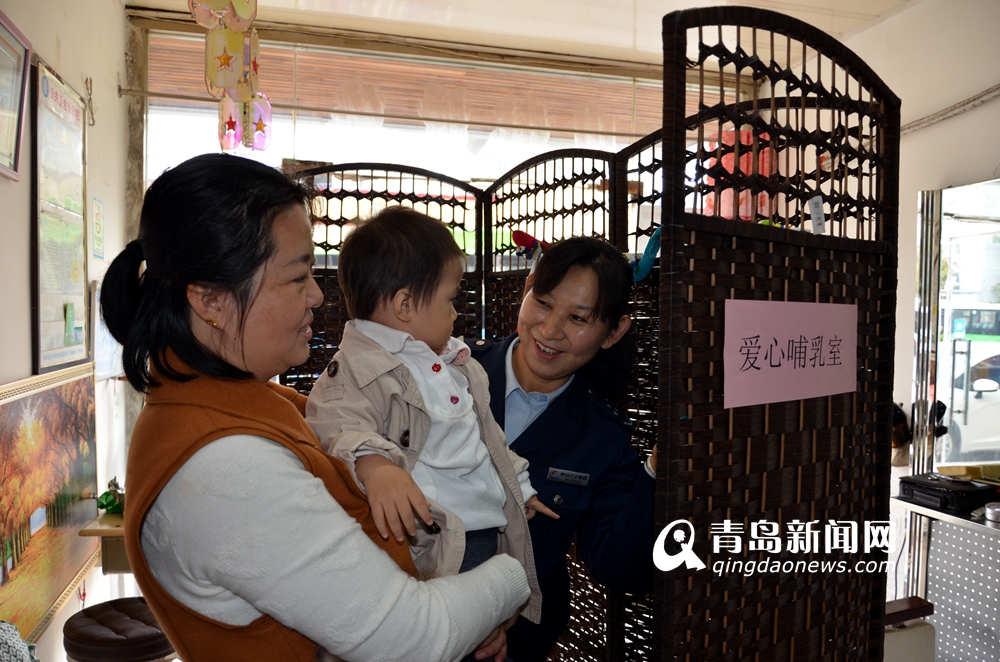 今年10月份开始,市南巴士一分公司的志愿者团队走访了1路线四方站点附近的爱心候车室,与藏生堂足疗馆等十余家商铺协商,在候车室内布置了“爱心哺乳区”,哺乳区均用屏风或厚实的窗帘进行隔断,内设有暖水瓶、一次性擦手纸、垃圾桶、婴幼儿玩具、卡通类漫画等用品,方便女性安抚婴幼儿,极大的解决了妈妈们外出哺乳的难题,让年轻的妈妈在出行中感受到家的温暖。