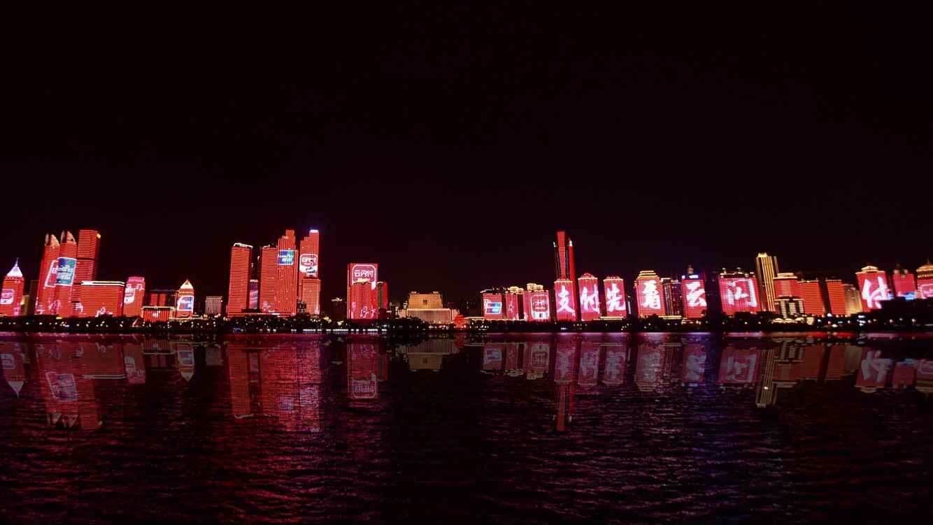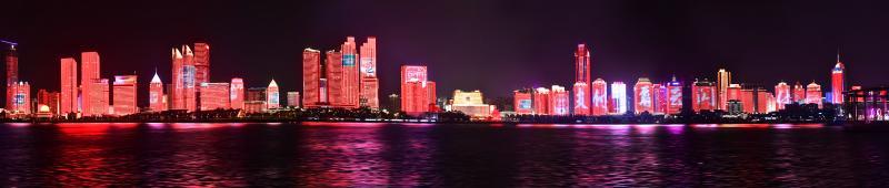 银联各领域的便捷支付场景映现在一座座摩天大楼上