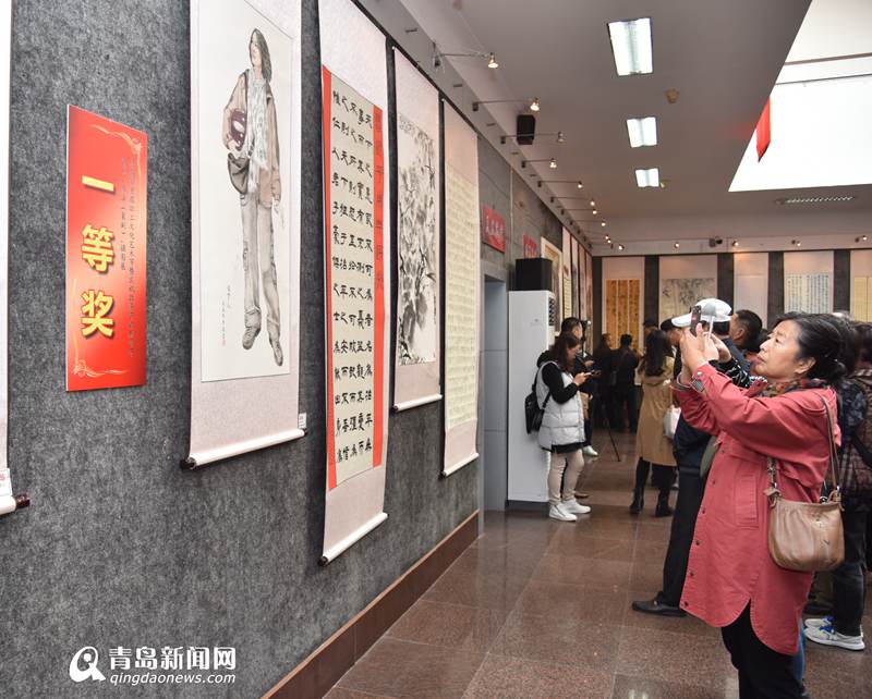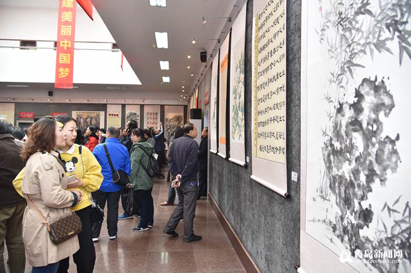 青岛市首届职工文化艺术节暨庆祝改革开放40周年美术、书法(篆刻)、摄影比赛作品展开幕。