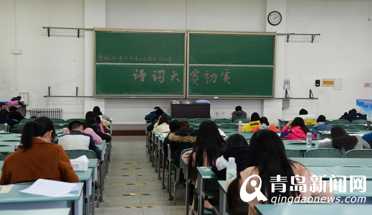 多所驻青高校也积极参与到“2018青岛市市民诗词高手”线上海选过程中,还组织了许多现场PK,展现了当代大学生对古诗词的高涨热情。例如11月10日,中国海洋大学举办了“2018青岛市市民诗词高手”专场选拔赛,本次选拔赛分为初赛和决赛两轮,吸引了来自14个学院的百余位本科生报名参加。初赛分为主观题和客观题两部分,内容围绕中国古典诗词展开,从唐宋至明清,从绝句到律诗,形式多样,内容丰富,能充分考验大学生们的古诗词功底。为表达对同学们参赛的鼓励,每一位参赛同学都获得了充满古典韵味的古诗词书签一张。