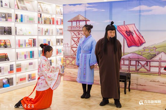 青岛新闻网11月20日讯(记者 张力伟)由青岛市文化广电新闻出版局主办,青岛新华书店承办,書果星球阅读教育基地协办的2018年青岛市文艺精品项目——中外著名少儿舞台剧系列演出于17日、18日下午在栈桥书店和青岛书城举行,青岛市东胜路小学六年级同学们作为舞台剧《花木兰》的小演员参与演出。