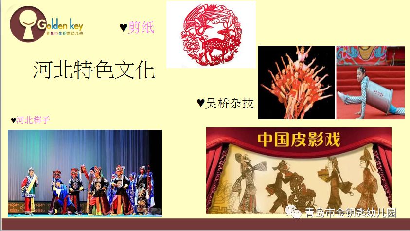 吃之余,老师还给孩子们介绍了河北的特色文化:皮影戏、河北评剧、河北梆子、吴桥杂技…