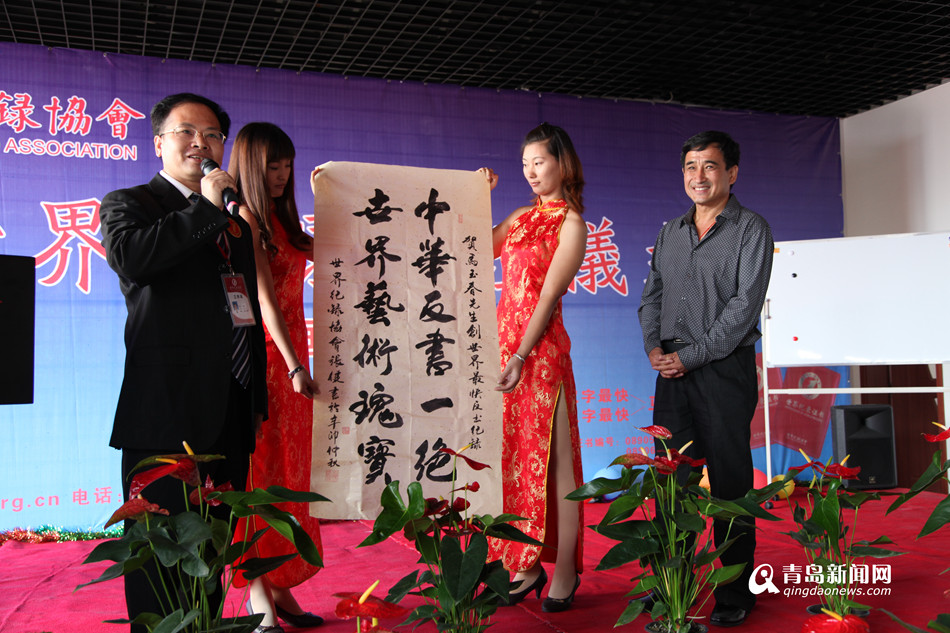 马玉春不仅是一位事业有成的企业家,同时他还是反笔书法两项世界纪录的保持者。练习反笔书法30多年,马玉春反书书法不仅能左右反写,上下反写,还能够顺、逆时针90度反写。
