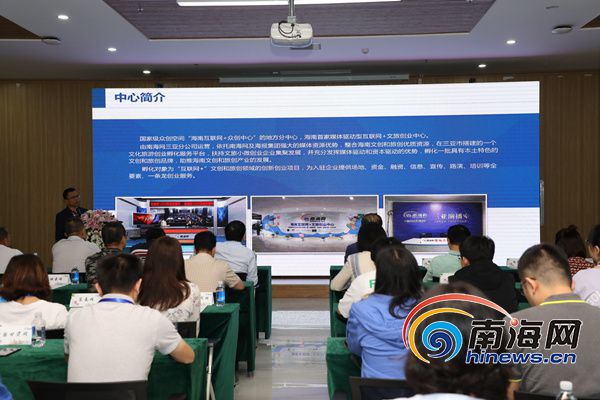 当天上午,三亚市互联网双创中心内宾客云集,南海网副总编辑陈书焕向各位嘉宾及全国60余家融媒体采访团成员介绍了“海南互联网+文旅创业中心”的特色亮点、硬件设施、配套服务、入驻企业等内容。