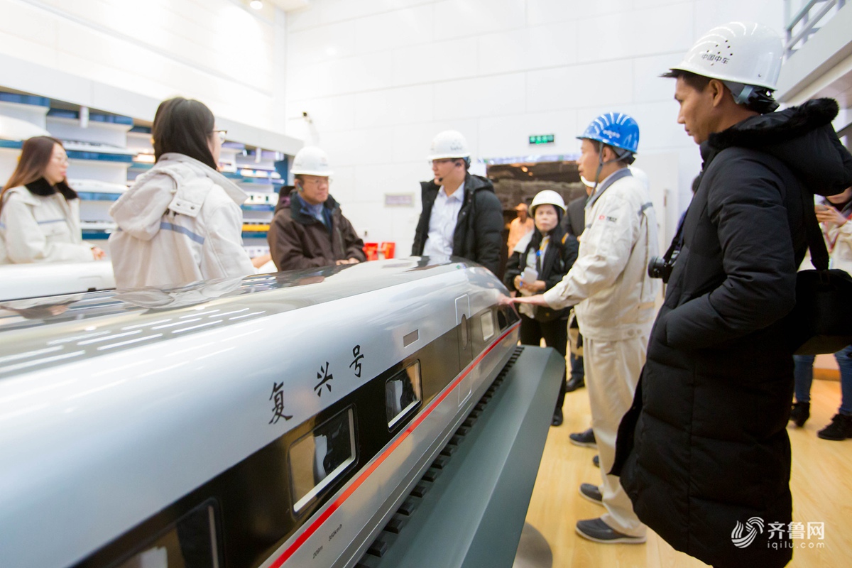 中车青岛四方机车车辆股份有限公司诞生于1900年,是中国中车股份有限公司的核心企业,中国高速列车产业化基地,铁路高档客车的主导设计制造企业,国内地铁、轻轨车辆定点生产厂家和国家轨道交通装备产品重要出口基地。图为:观众在参观复兴号模型。