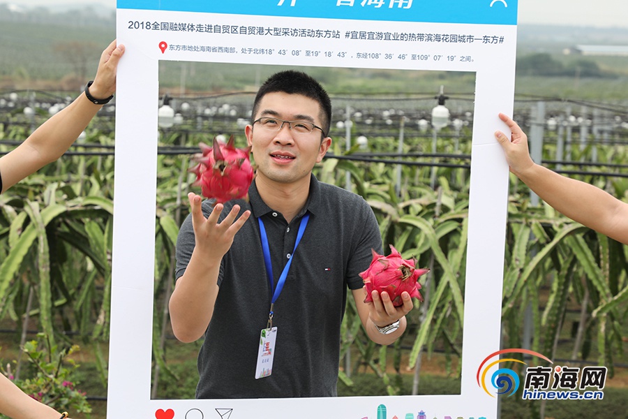 “改革开放看海南”2018全国融媒体海南行大型活动采访团在海南北纬18度果业有限公司火龙果基地合影留念。南海网记者李昊摄