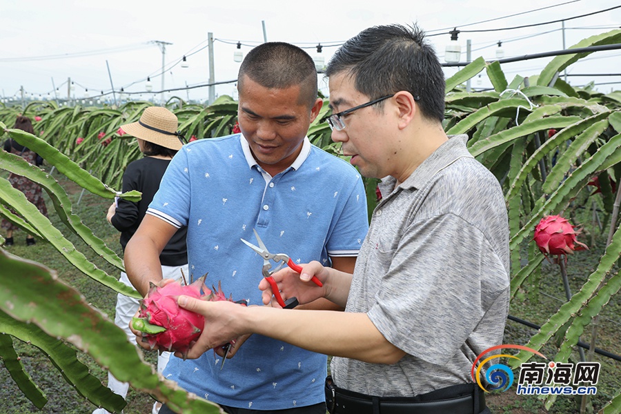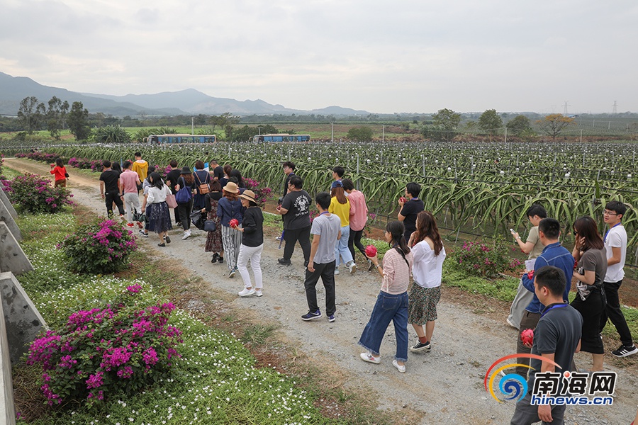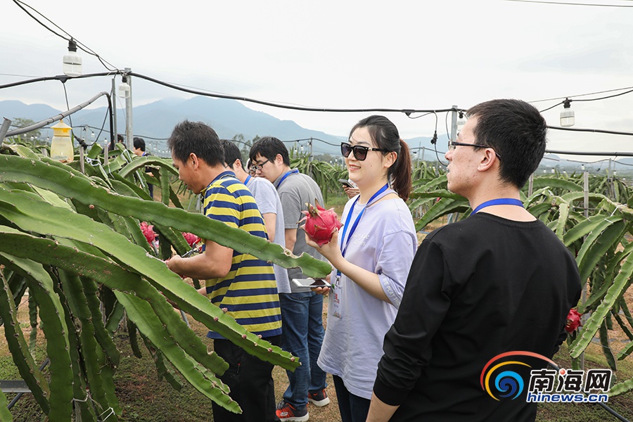 11月29日下午,“改革开放看海南”2018全国融媒体海南行大型活动采访团来到海南北纬18度果业有限公司火龙果基地参观采访。南海网记者李昊摄