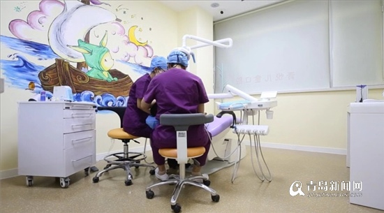 除了考虑牙科诊所必须达到的卫生条件外,在装修装饰风格上,以儿童为使用和服务对象,充满童趣。记者在现场看到,在青悦儿童口腔诊疗室的顶棚上特别装有吊式的电脑屏幕。“可以为孩子播放动画片,转移孩子注意力,安抚孩子紧张、害怕的情绪。”工作人员告诉记者。