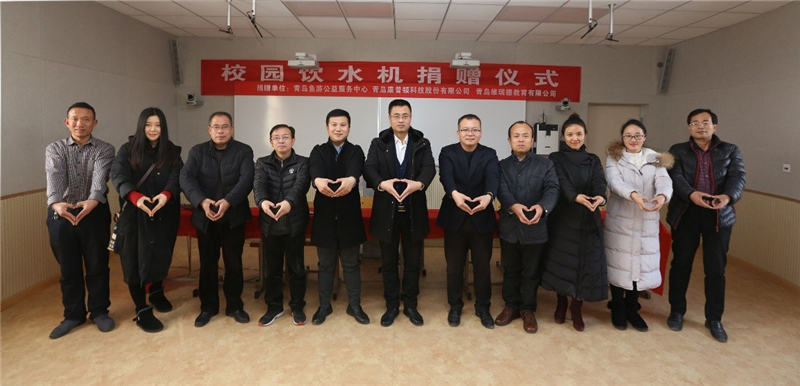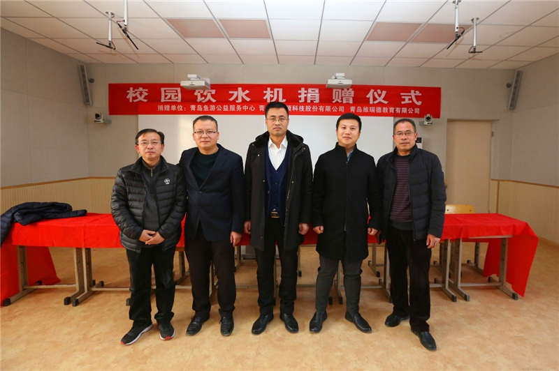 在捐赠现场,大手小手教育的爱心团队与青岛鱼游公益服务中心、青岛康普顿科技股份有限公司等爱心单位为罗头小学捐赠了饮水处理系统。