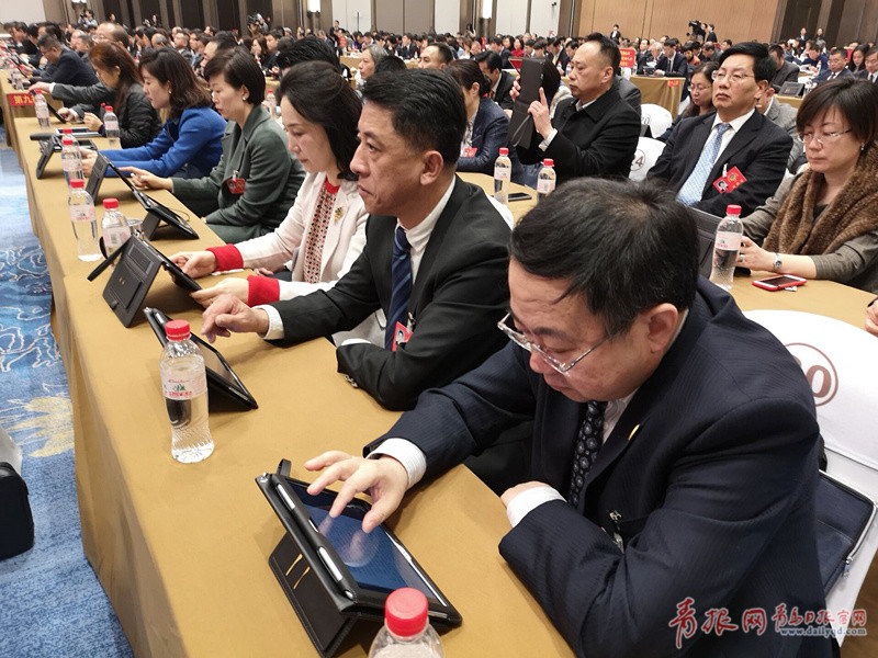 ▲委员阅读报告。记者 傅学军 摄