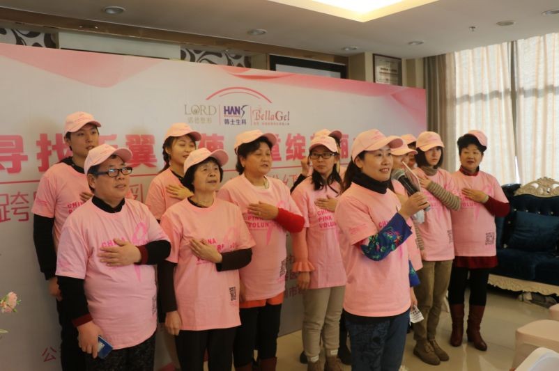 青岛诺德医学美容医院 曹继武院长、韩士生科株式会社大区总经理 李勇哲先生、粉红丝带乳腺关爱中心第三届监事 吴虹萱女士、粉红丝带乳腺关爱中心行政专员 董美华女士、济南粉红丝带筑梦空间领袖 董秀芹女士、粉红30多名志愿者及多家青岛本地媒体参与了此次公益活动启动仪式。