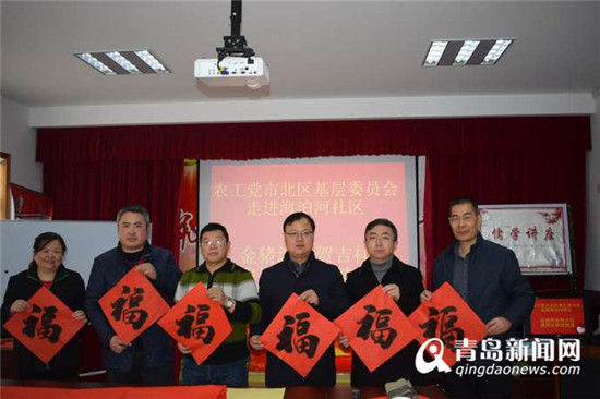青岛新闻网1月23日讯 春节将至,年味正浓。1月23日下午,农工党市北区基层委员会的成员们来到了镇江路街道海泊河社区,开展了“金猪迎春贺吉祥泼墨送福送健康”活动,送福字、做义诊……带着慰问品走访社区困难群众,为他们送上新春祝福。