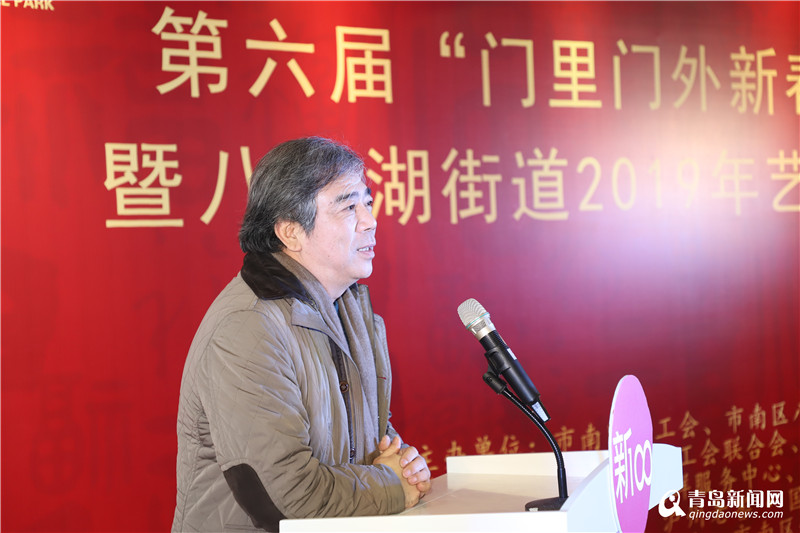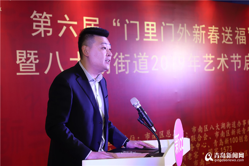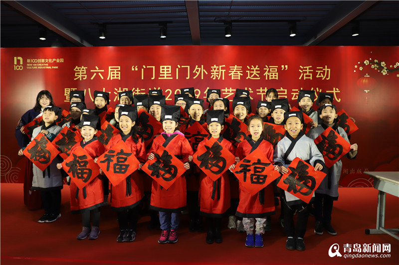 青岛新闻网1月25日讯(记者 姜舒骞)1月25日上午,南京路100号的新100创意文化产业园内一派节庆喜气。由市南区总工会、八大湖街道办事处主办,八大湖新100党群服务中心、新100工会联合会、市南区新兴青年汇协办,青岛新100创意文化产业园承办,泸州老窖·国窖1573赞助的第六届“门里门外新春送福”活动暨八大湖街道2019年艺术节在这里隆重启幕。市、区两级政府领导、岛城艺术家、园区企业及各界职工群众千余人齐聚园区,共同参与了这一年一度的文化惠民活动。