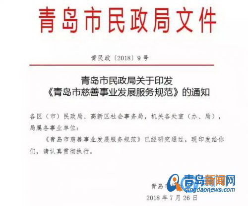青岛新闻网1月25日讯 2018年7月26日,青岛市民政局印发《青岛市慈善事业发展服务规范》,这是国内首个促进慈善事业发展服务的标准化规范文件。一起来看看,规范中提到了哪些内容~