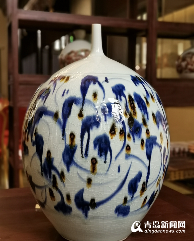 讲座现场共展示了许雅柯青花釉里红陶瓷作品三十余件,完整展现了其青花釉里红艺术的独特审美高度。在讲座中许雅柯教授结合作品谈到他在陶瓷创作中的理念、脉络与未来期许:“我遇见青花,其实是从品质高洁的青花艺术进入,到把流光溢彩的釉里红烧制到新的审美高度,再到今后对氧化铁的艺术探寻,这条脉络其实是一种体系的积累,一种生态的连续,是一条纵向与横向的脉络联接。”