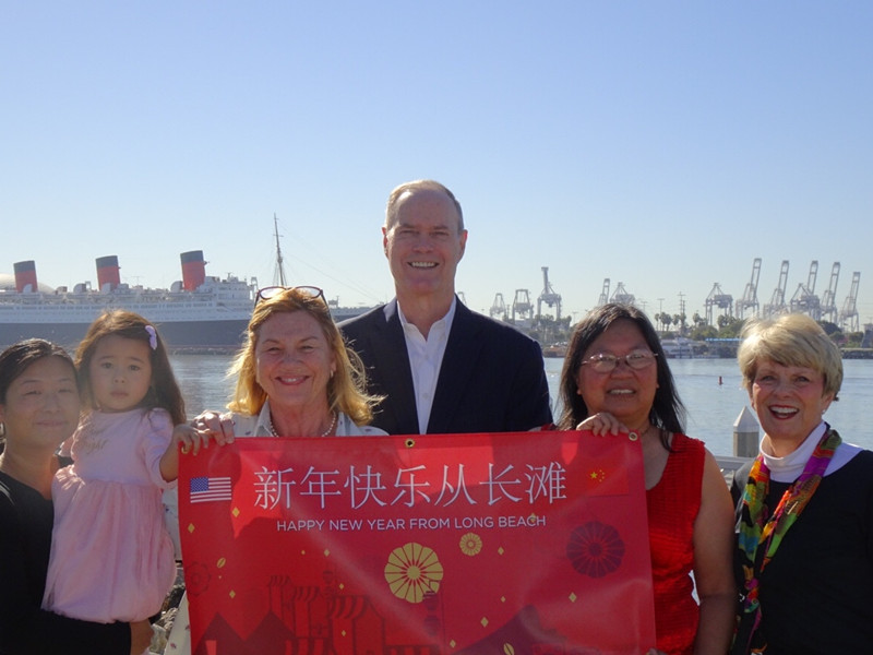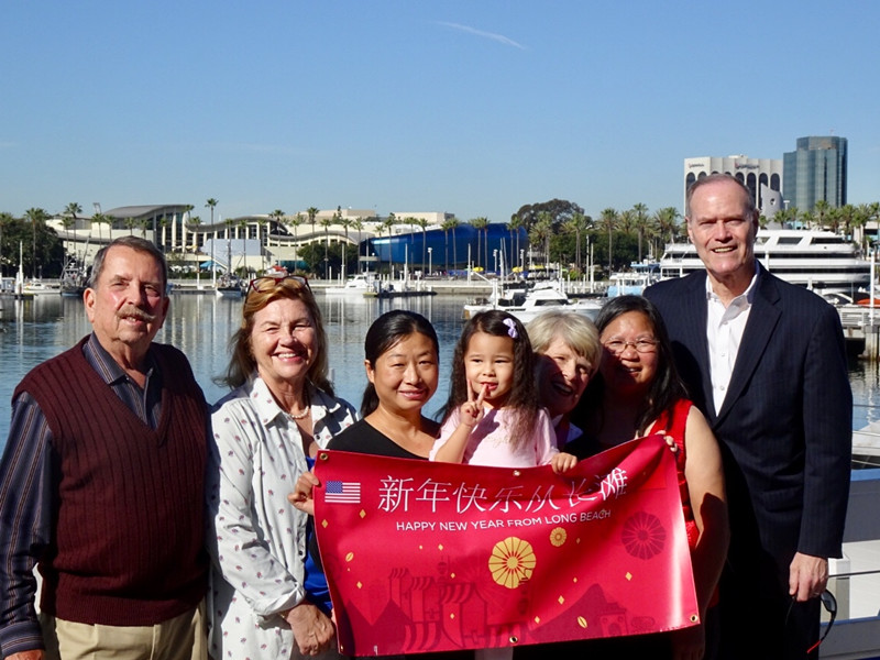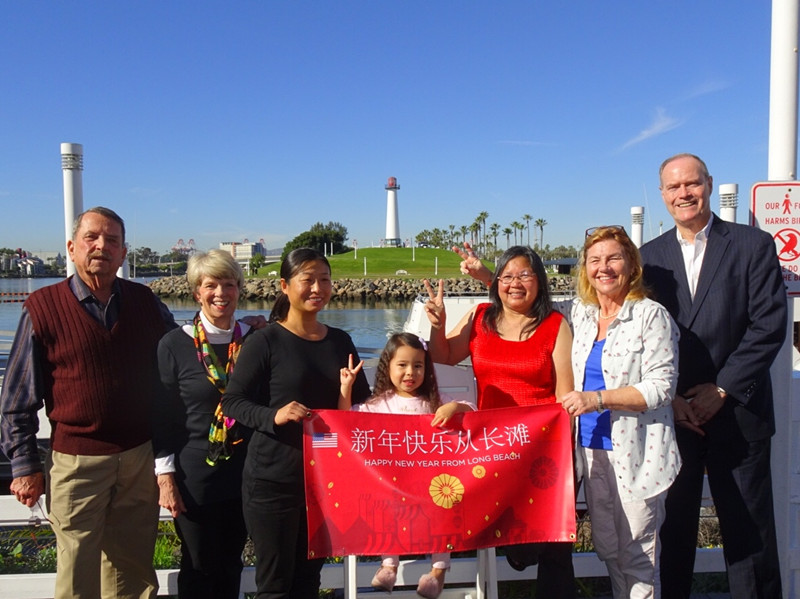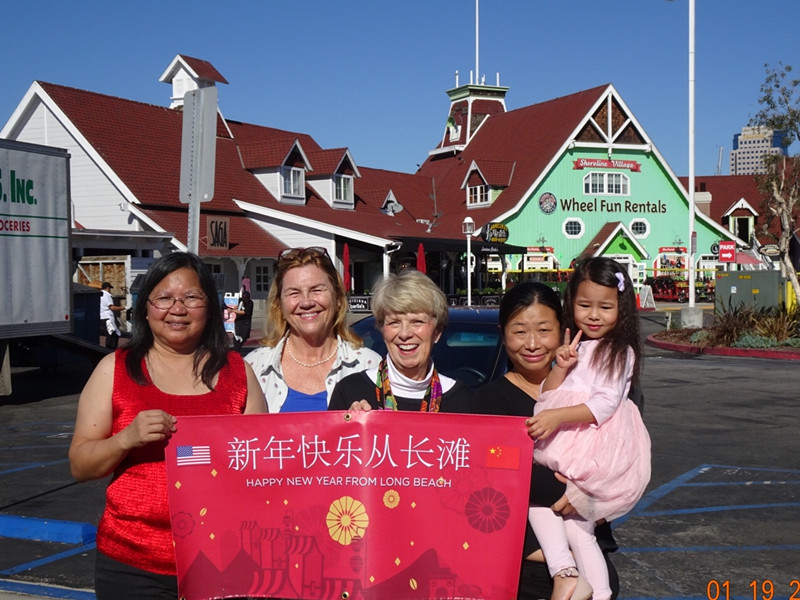 青岛市友好城市美国加州长滩市友城委员会前任主席玛丽·巴顿女士及现任主席大卫·格里菲斯先生及长滩市民向青岛市民致以新春祝贺。