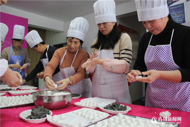 一边是表演区欢歌笑语,另一边的活动区也十分热闹。社区包汤圆厨艺达人纷纷亮相,社区工作人员早已准备好了面粉、黑芝麻等材料,和面粉、调馅儿料、煮元宵……向居民们展示着包汤圆、做元宵的技艺和乐趣,吸引了不少居民。