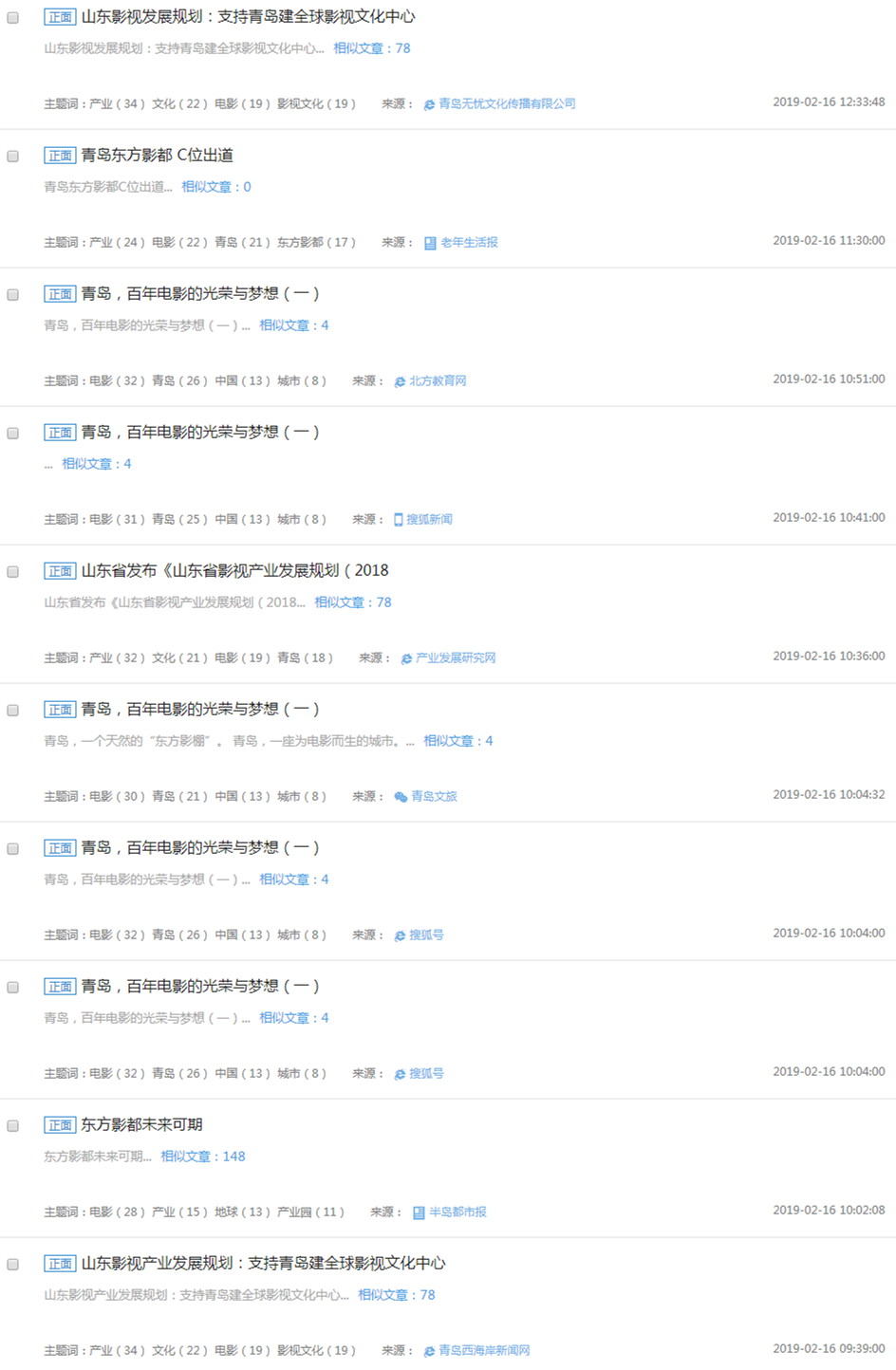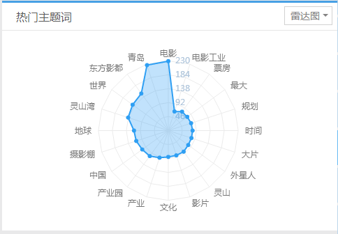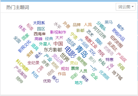在2月1日-2月16日期间,“青岛”、“电影”、“东方影都”、“灵山湾”等关键词被频繁提到,其中“青岛”被提及227次,“东方影都”被提及151次,“灵山湾”被提及139次,“摄影棚”被提及111次。