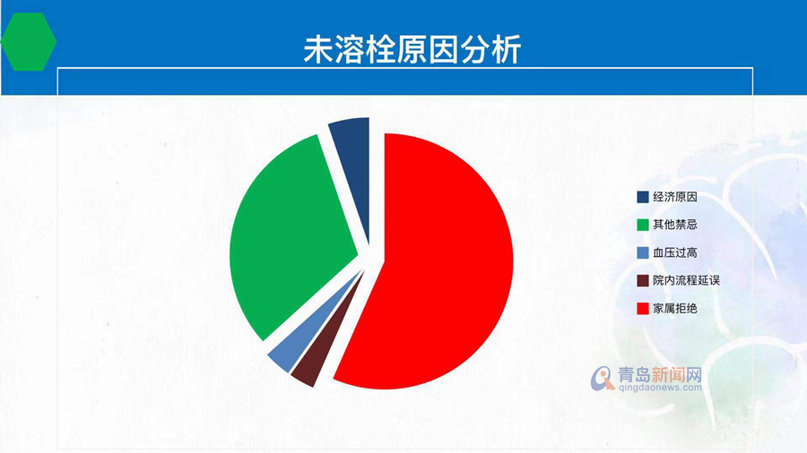 记者注意到,在我市脑卒中质控工作总结中,谭兰现场公布了”未溶栓原因分析“占比图例,其中”家属拒接“这项占据半数以上。