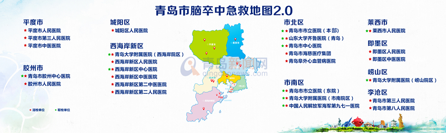 2017年6月18日,青岛市卫计委、市脑卒中质控中心、市120急救中心联合首次发布青岛市“急性脑卒中溶栓地图”,20多家医院联合参与,与“120”急救院前救治体系结合,在青岛六区四市形成覆盖900多万人口的脑血管疾病快速救治网络,脑卒中黄金1小时急救圈。在统一的脑卒中信息共享平台上,20多家医院的院前急救与卒中中心的信息实现共享联动,我市院前急救系统与医院系统实现了无缝对接。