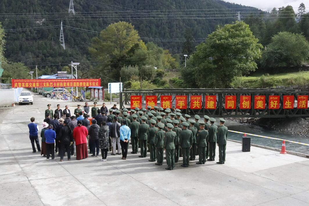 2018年8月底,巴卡村乡村路、“连心桥”顺利竣工,进一步改善了村里的通行条件,美化了村容村貌,促进了当地旅游业、农牧业的发展,让驻地百姓的增收致富走上了“快车道”。通车当天,一位70岁高龄的独居聋哑老人索朗尼玛给官兵竖起了大拇指,这一个简单的动作生动诠释了当地群众对武警官兵的感谢之情。