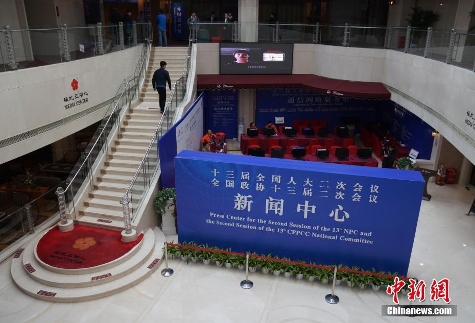 2月27日,2019年全国两会启幕在即,位于北京梅地亚中心的全国两会新闻中心正式启用,对境内外记者提供信息咨询等服务。据介绍,2019年两会新闻中心首次实现5G网络全覆盖。中新社记者 崔楠 摄