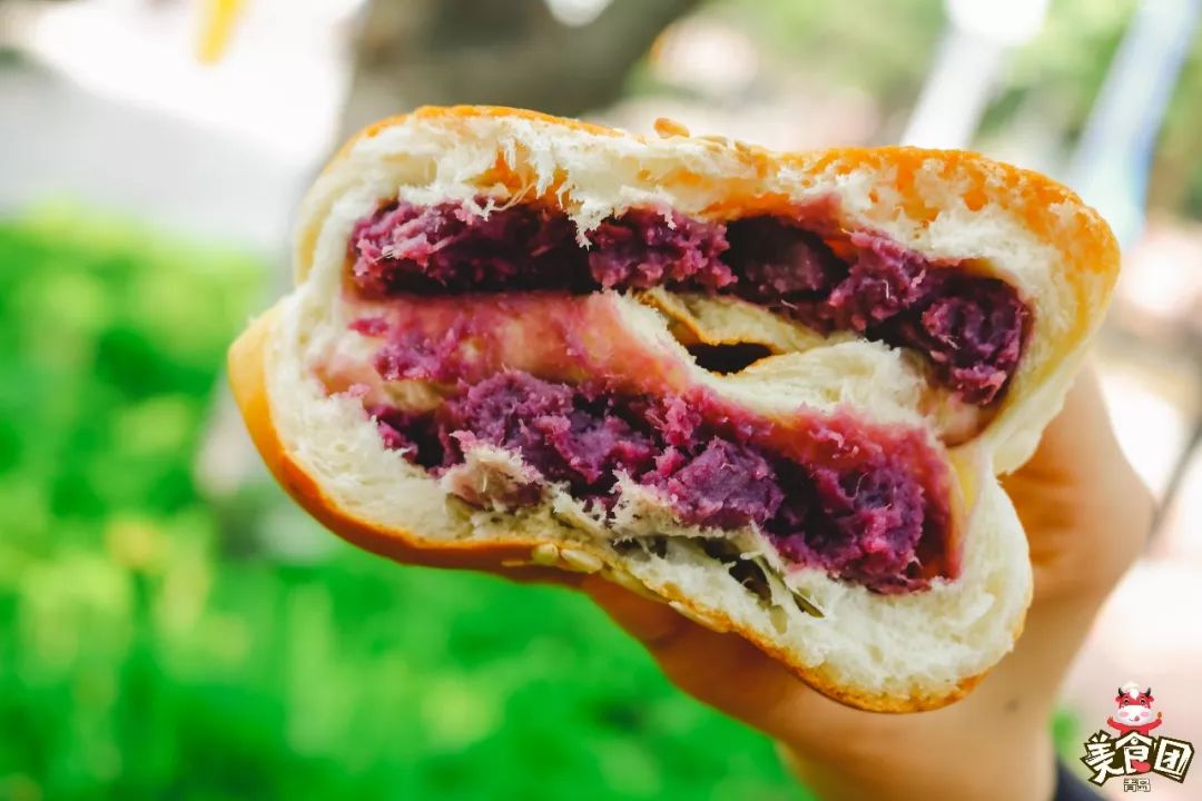 紫薯面包拿在手里很有分量,紫薯馅特别饱满,就这样一个面包居然才1.6元!吃第一口就被惊艳到了!像在吃蒸熟的紫薯,绵软又有着淡淡的甜。