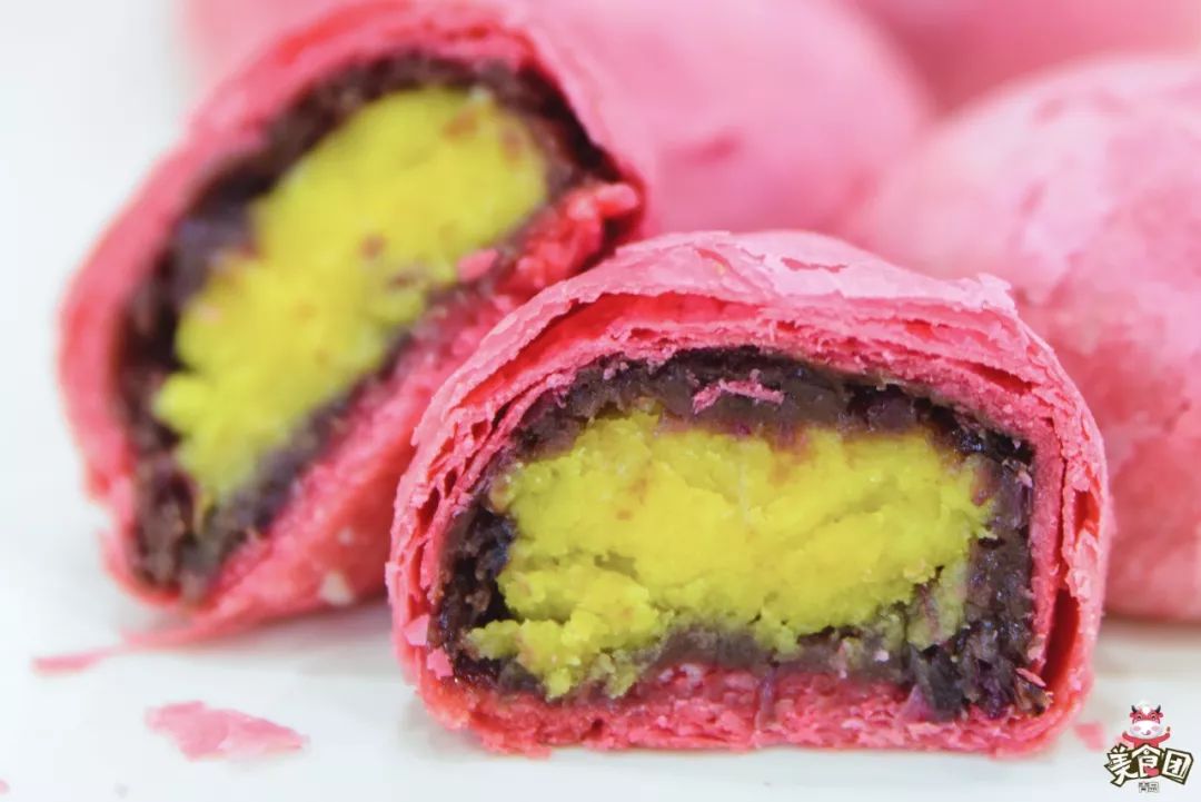 玫瑰味酥皮掰开的瞬间还会闻到清新的玫瑰香气~内馅豆沙是用云南空运玫瑰花瓣加入特别调制的,咬一口不仅有蛋黄的脂香,还能回味到玫瑰丝丝的甜蜜感。