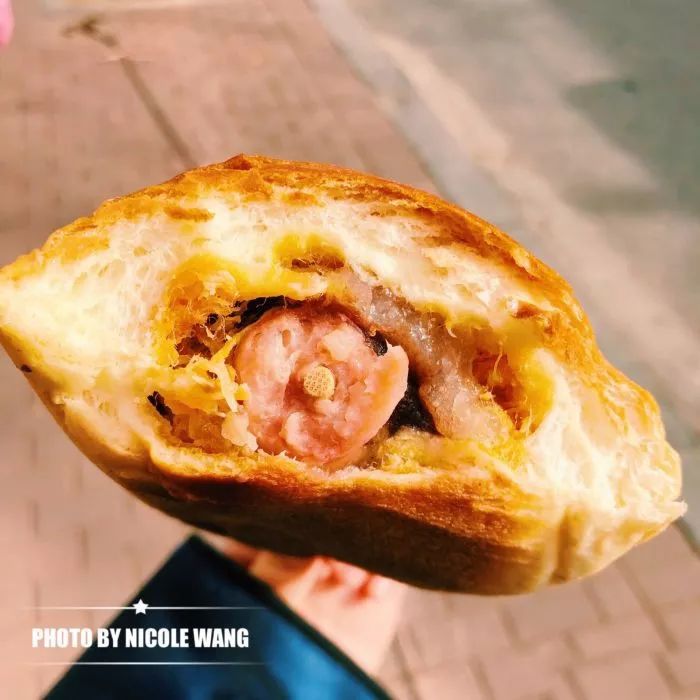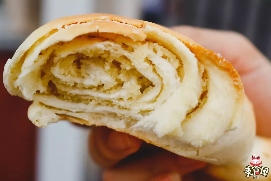 跟金麦园的面包不同,这里的面包是一层一层的。外皮酥脆,趁热赶紧咬一口直掉油酥渣,跟小时候吃的一模一样!