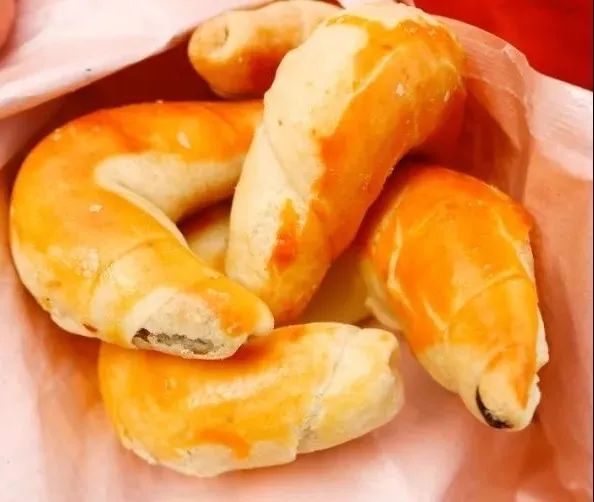 油酥面包也叫牛角面包,小小的一个拿着很可爱。
