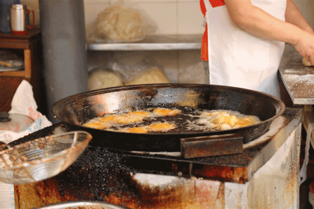 这个夫妻俩经营的店铺,一个揉面下锅,一个捞出来售卖,配合的默契,小小的油炸糕里也都是温馨。
