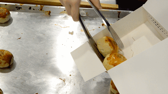 花生面包是最受欢迎的产品,刚出炉的面包拿着还有些烫手,馅料跟花生汤圆的味道很像,不过是咸口。面包和花生碎的香气交织在一起,吃完就后悔买少了!