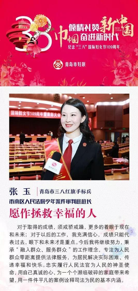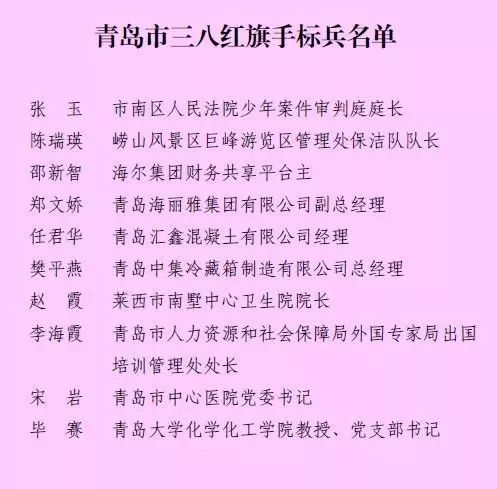大会表彰了张玉等10名青岛市三八红旗手标兵,马静等200名青岛市三八红旗手,市南区人民检察院办公室等100个青岛市三八红旗集体。
