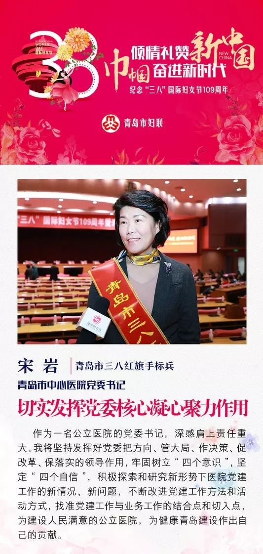 在“三八”国际妇女节即将到来之际,我市召开“巾帼心向党,建功新时代”—青岛市纪念“三八”国际妇女节109周年暨表彰大会。市有关领导出席大会,全市各界妇女代表600多人参加了会议。