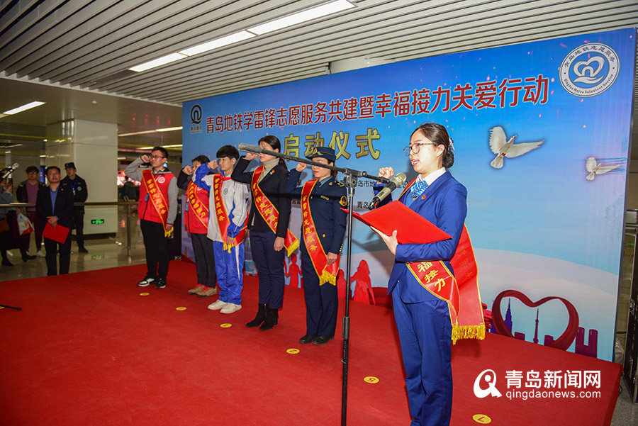当天,市地铁办副主任,地铁集团党委副书记、副总经理孙震致辞,现场为青岛地铁志愿服务手语队授旗,为志愿者代表颁发“学雷锋志愿服务”绶带。志愿者代表共同宣誓,承诺以实际行动践行新时代雷锋精神。中心聋校学生手语演唱了《青岛地铁志愿者之歌》。此次活动旨在鼓舞志愿者们在新时代雷锋精神和志愿服务精神的指引下,用爱心传承文明,用真情奉献社会,用行动践行诺言,为把青岛建设成为开放、现代、活力、时尚的国际大都市贡献力量。