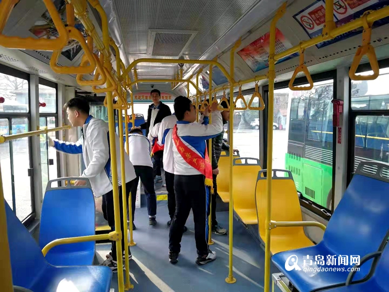 青岛新闻网3月6日讯(通讯员 杨正)3月是雷锋月,6日下午,青岛房产中学的志愿者们(师生)走进公交崂山巴士第五分公司开展“学雷锋”义务打扫公交车活动,并学习安全出行和乘车注意事项。