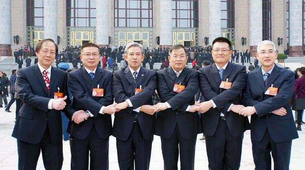 来自航空工业的全国政协委员们准备进入会场(从左至右分别是:李克明、吴希明、谭瑞松、唐长红、李志强、崔彦勇)