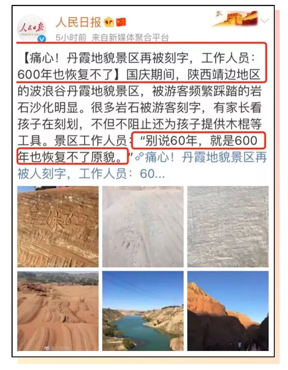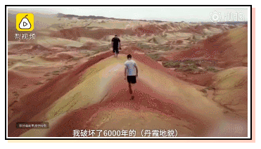 无独有偶,甘肃七彩丹霞景区也惨遭破坏。