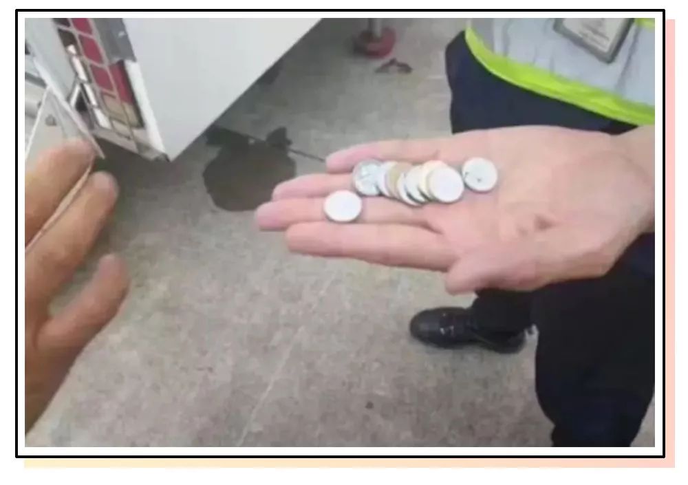 5个小时后,全部硬币被取了出来,2枚5角硬币,和7枚1角硬币,一共一块七毛钱。