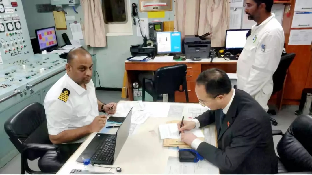 承办法官用英语向船长说明了扣押船舶的原因、后果以及担保要求等,并对船长、船员提出的疑问一一进行了解答。船长在与新加坡的船东沟通后,签署了扣押船舶命令等法律文书,提供了有关船舶文件。