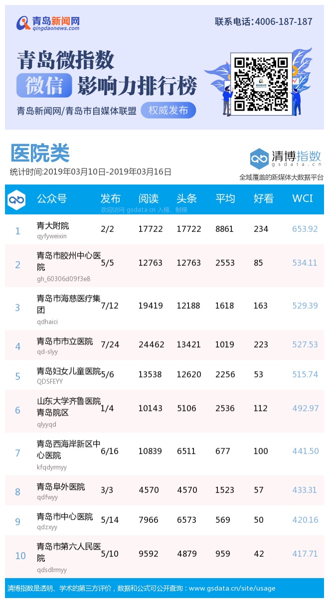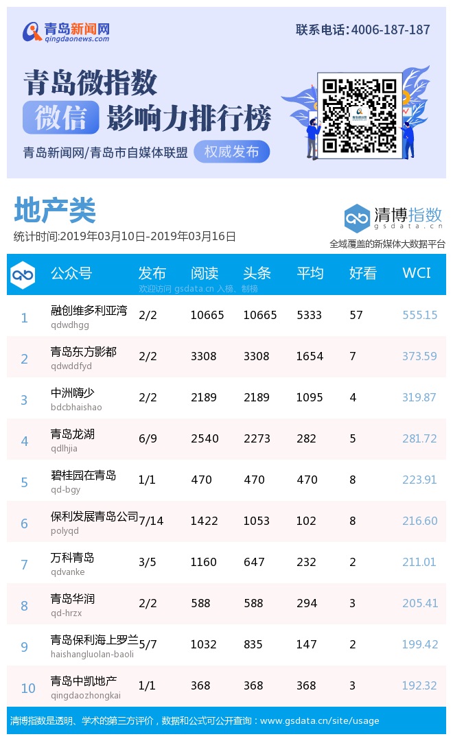 3、本次榜单收录了青岛14个行业微信公众号,如您的账号暂未收录,可联系4006-187-187。