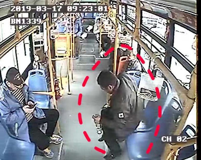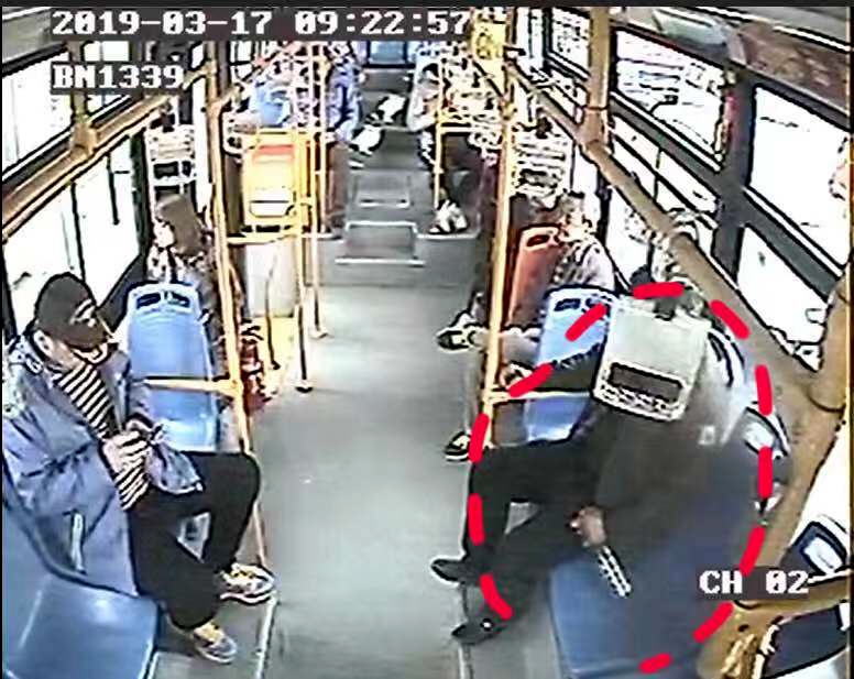 据监控视频显示,事情发生在17日上午九点5分,该男子从大崂路夏庄路站上车,“上车后该男子走路晃晃悠悠并伴随着阵阵酒气,嘴里嘟囔着什么,神态有些异常。我觉得肯定是喝大了,我就特别提醒了旁边乘客,让大家留意一下该男子动态,如有不适立刻向我反映”驾驶员毕德学回忆说。