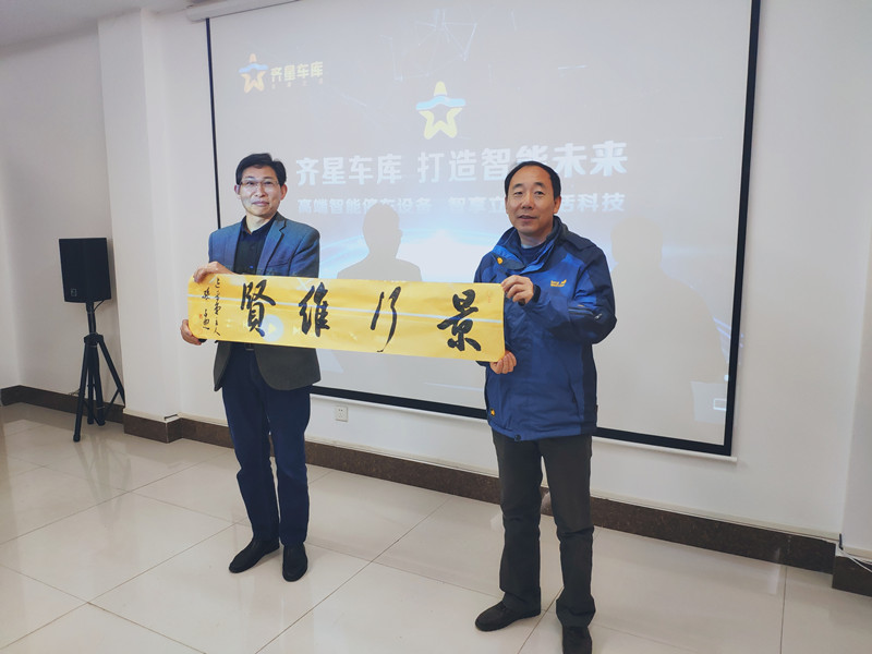 最后,青岛民进市委办公室刘朝辉主任为青岛齐星车库赠送书法“景行维贤”,此次的参观与交流让彼此收获很多,也受益匪浅,以参观考察为契机,进一步增进沟通、交流与合作,以期实现双方共赢。