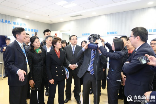 此次新闻发布会上,国家卫健委规信司司长毛群安介绍全国“互联网+医疗健康”发展及便民惠民服务工作情况,山东卫健委主任袭燕介绍了山东省相关工作情况并发布“山东医健通”上线,青岛市副市长栾新、市卫健委主任隋振华、青大附院院长董蒨等出席了发布会。在会后的观摩体验环节,5G+VR直播的远程数字化手术室引得大家争相尝鲜。
