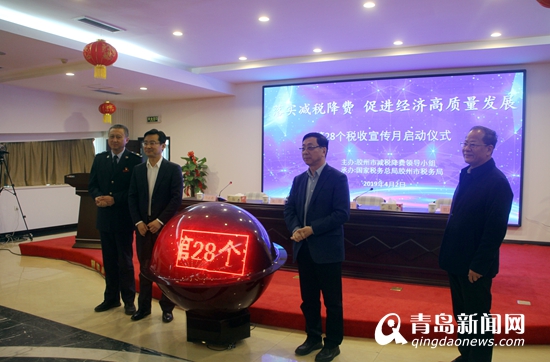 青岛市税务局党委委员、总会计师姜仕竹和中共胶州市委常委、副市长吴刚共同启动了胶州市税务局第28个税收宣传月。