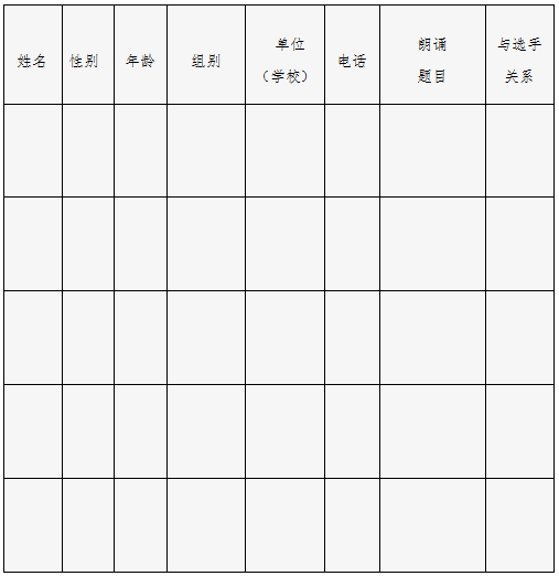 第十四届全省读书朗诵大赛家庭组报名表